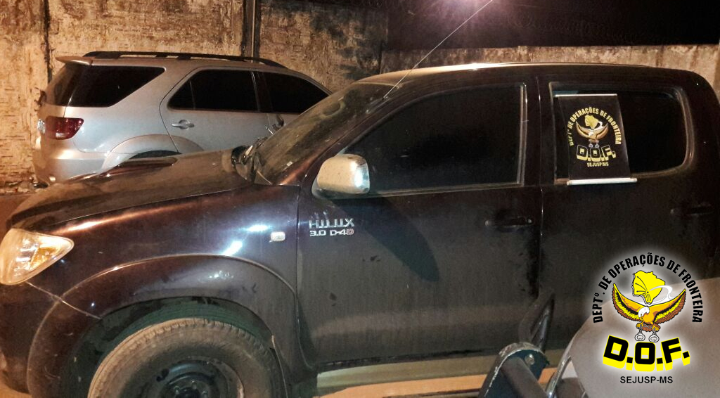 Dourados (MS) – Policiais do Departamento de Operações de Fronteira (DOF) localizaram, na noite de segunda-feira (31), por volta das 20h30, uma camionete Toyota Hilux tomada em assalto no Distrito de Itahum, a 70 Km de Dourados. Uma equipe policial do DOF