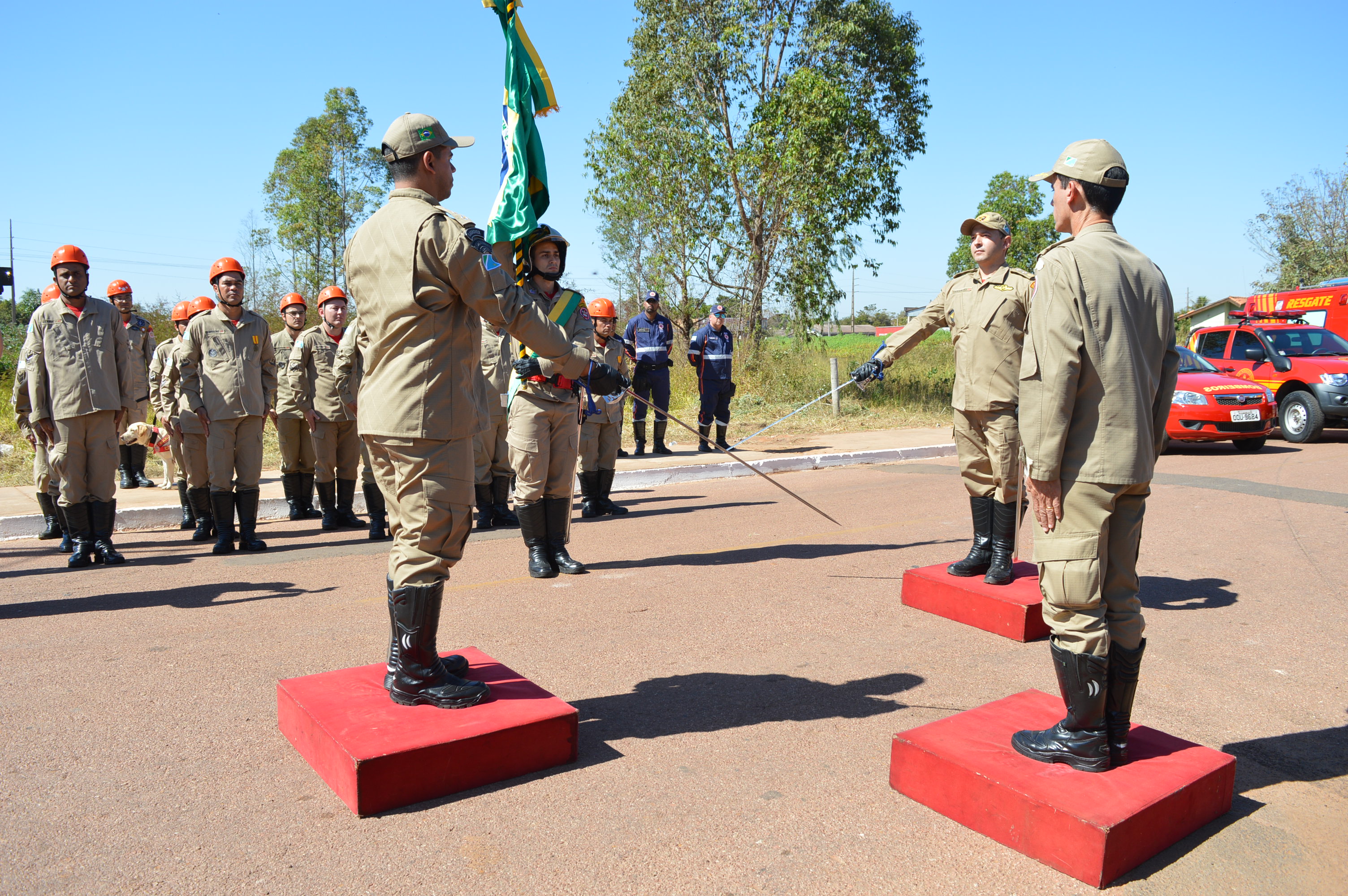 Coxim (MS) – Na manhã de (26), o Comandante e Subcomandante do 5º Batalhão de Polícia Milita, Tenente-Coronel PM Marcio Ávalos Cabanha e Major Luiz Cesar de Souza Herculano participaram da solenidade de passagem de comando do Bombeiros de Coxim. A