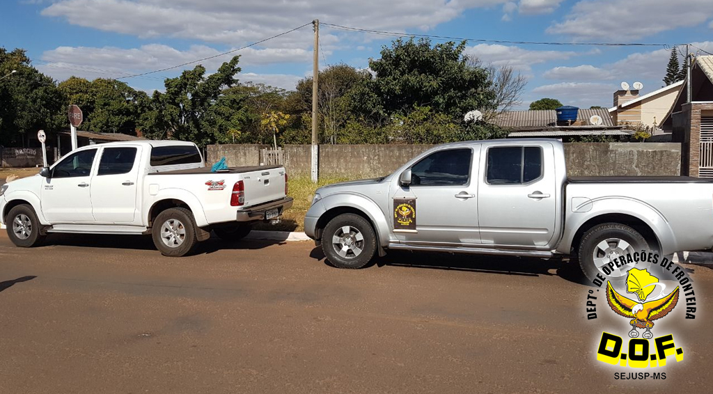 Amambai (MS) – Policiais do Departamento de Operações de Fronteira (DOF) apreenderam na manhã de domingo (30), por volta das 12h, uma Nissan Frontier e uma Toyota Hilux branca, ambos veículos com placas de Goiânia, GO. As apreensões ocorreram durante
