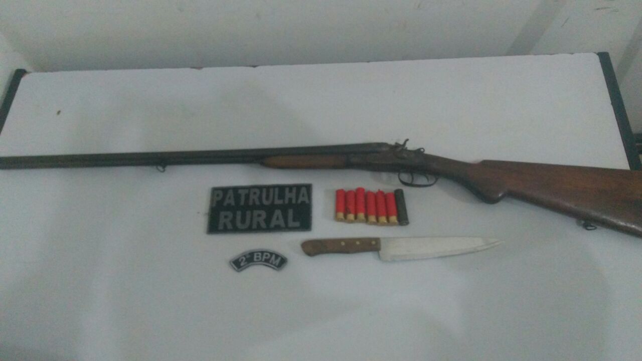 Três Lagoas (MS) – Ontem (16/07) por volta das 19h20min Policiais Militares da Patrulha Rural e do Grupamento do Distrito de Arapuá apreenderam uma Espingarda de dois canos calibre .24 sem numeração aparente, 06 (seis) cartuchos de plásticos do mesmo