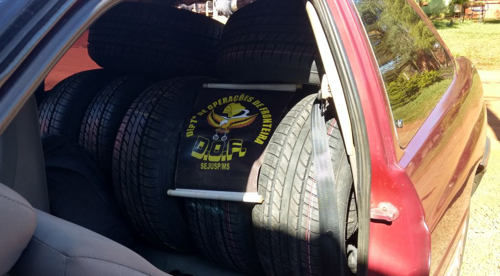 Maracaju (MS) – Policiais do Departamento de Operações de Fronteira (DOF) apreenderam na manhã de sexta-feira (14), por volta das 10h, um veículo Ford Escort de cor vermelha e placas de Campo Grande, MS carregado com 44 pneus de origem estrangeira e sem