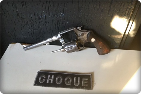 Campo Grande (MS) – 13 de Julho de 2017. Na data de ontem (12) Policiais do Batalhão De Choque foram informados através CIOPS, que um elemento de camisa vermelha estava em frente a uma loja de motos portando uma arma de fogo no bairro Tijuca. A equipe