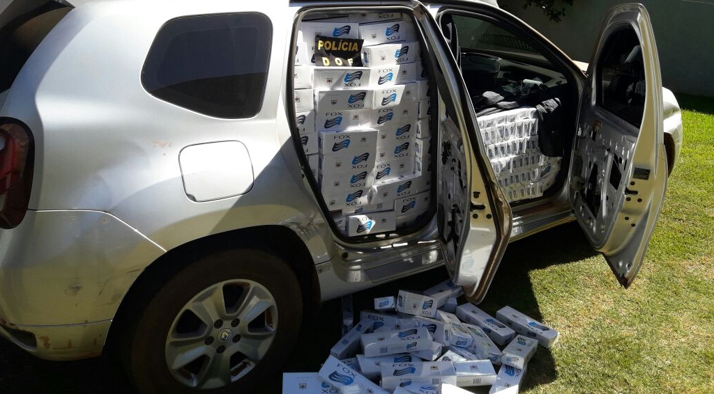 Dourados (MS) – Policiais do Departamento de Operações de Fronteira (DOF) apreenderam na manhã de quinta-feira (13), por volta das 11h, um veículo Renault Duster de cor prata e placas de Belo Horizonte, MG carregado com 40 caixas de cigarros de origem