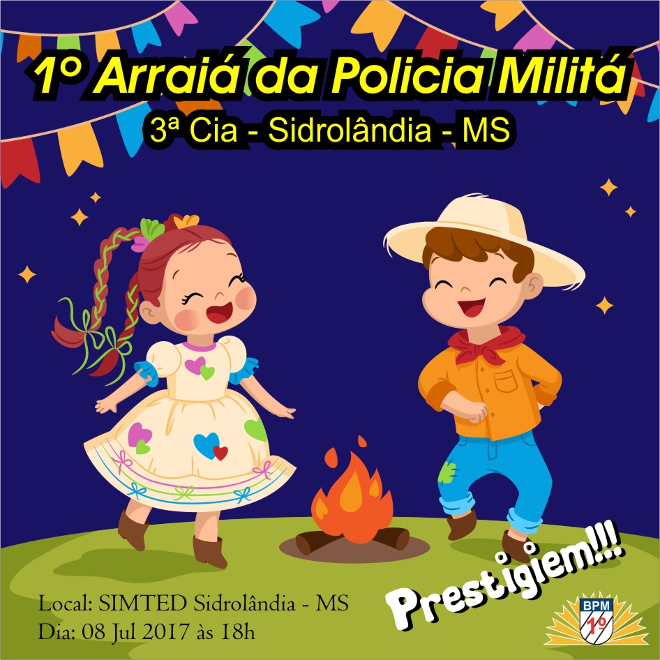 Campo Grande (MS) neste sábado (08), por volta das 18h, a 3ª Cia realizou a 1ª Festa Julina – “1º ARRAIÁ DA POLÍCIA MILITÁ”, em Sidrolândia – MS. O evento foi realizado no Sindicato Municipal dos Trabalhadores em Educação – SIMTED, e
