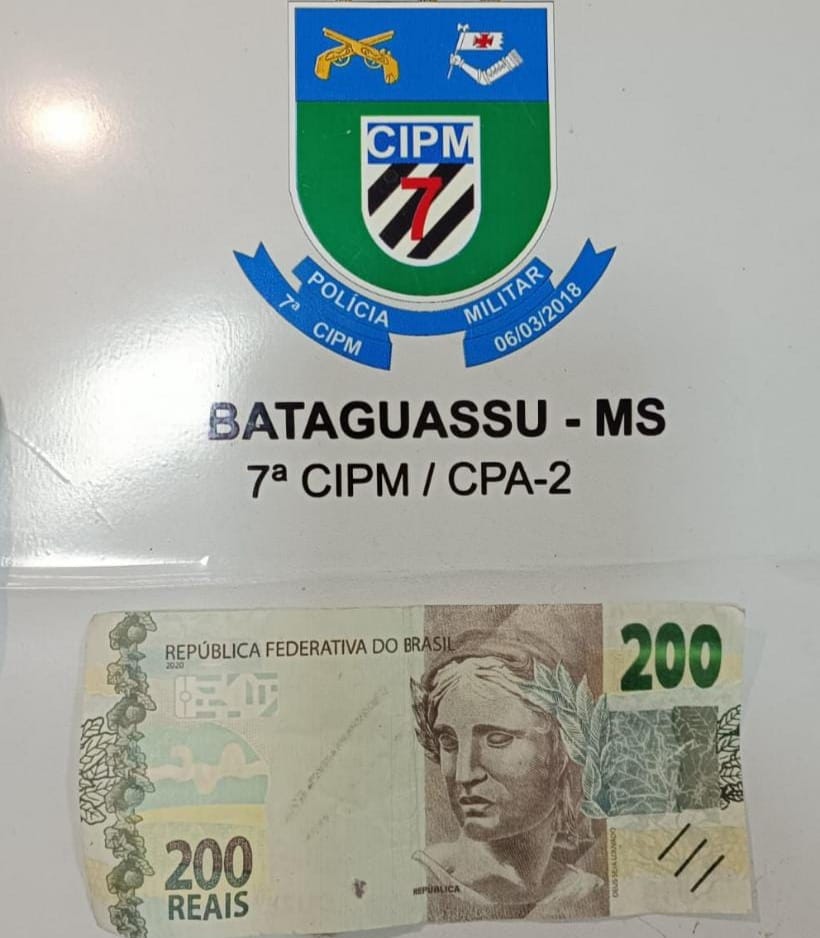 Bataguassu (MS) – Na noite de segunda-feira (23), uma Guarnição da Polícia Militar em Bataguassu apreendeu mais uma nota falsa e identificou novos suspeitos de estarem repassando notas falsas no comércio de Bataguassu e região. Os policiais