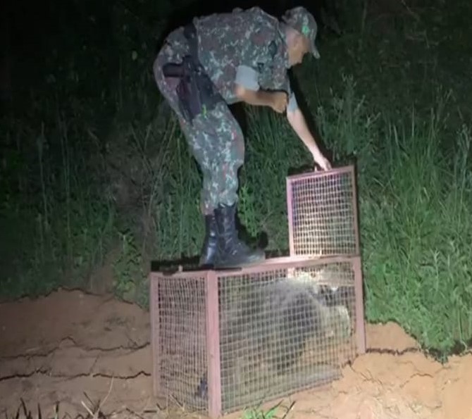 Campo Grande (MS) – Policiais Militares Ambientais de Batayporã capturaram ontem (23) às 21h50, um animal silvestre adulto da espécie Myrmecophaga tridactyla (Tamanduá-bandeira). Um morador do centro da cidade, de 44 anos, telefonou para a PMA,