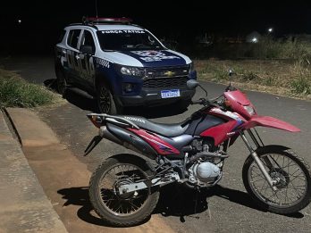 Paranaíba (MS) – Na tarde noite de sexta-feira (01/08), a equipe de Força Tática do 13º Batalhão de Polícia Militar de Paranaíba recuperou uma motocicleta com registro de roubo. A ação ocorreu após denúncia via 190, informando que uma