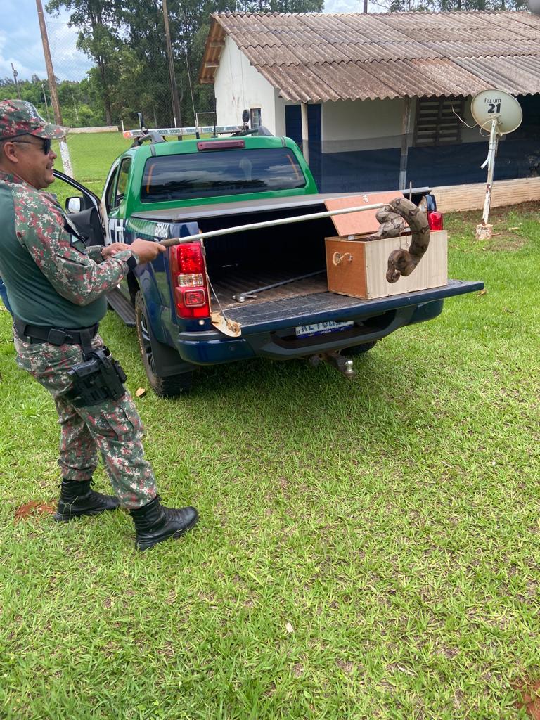 Campo Grande (MS) – Policiais Militares Ambientais de São Gabriel do Oeste capturaram uma serpente de 1,5 metro de comprimento, no pátio de uma associação bancária hoje (10) às 12h00. O funcionário da associação, localizada à margem