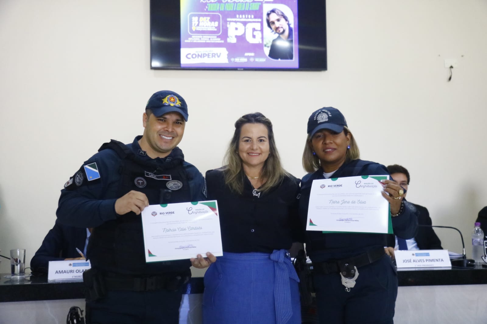 Coxim (MS): Os Policiais Militares de Rio Verde de MT/MS, Capitão Naércio Calvi Cardoso e Sargento Naira Jana da Silva foram agraciados na manhã de ontem (13/12), com moção de congratulação. O evento foi realizado na Câmara Municipal, onde os