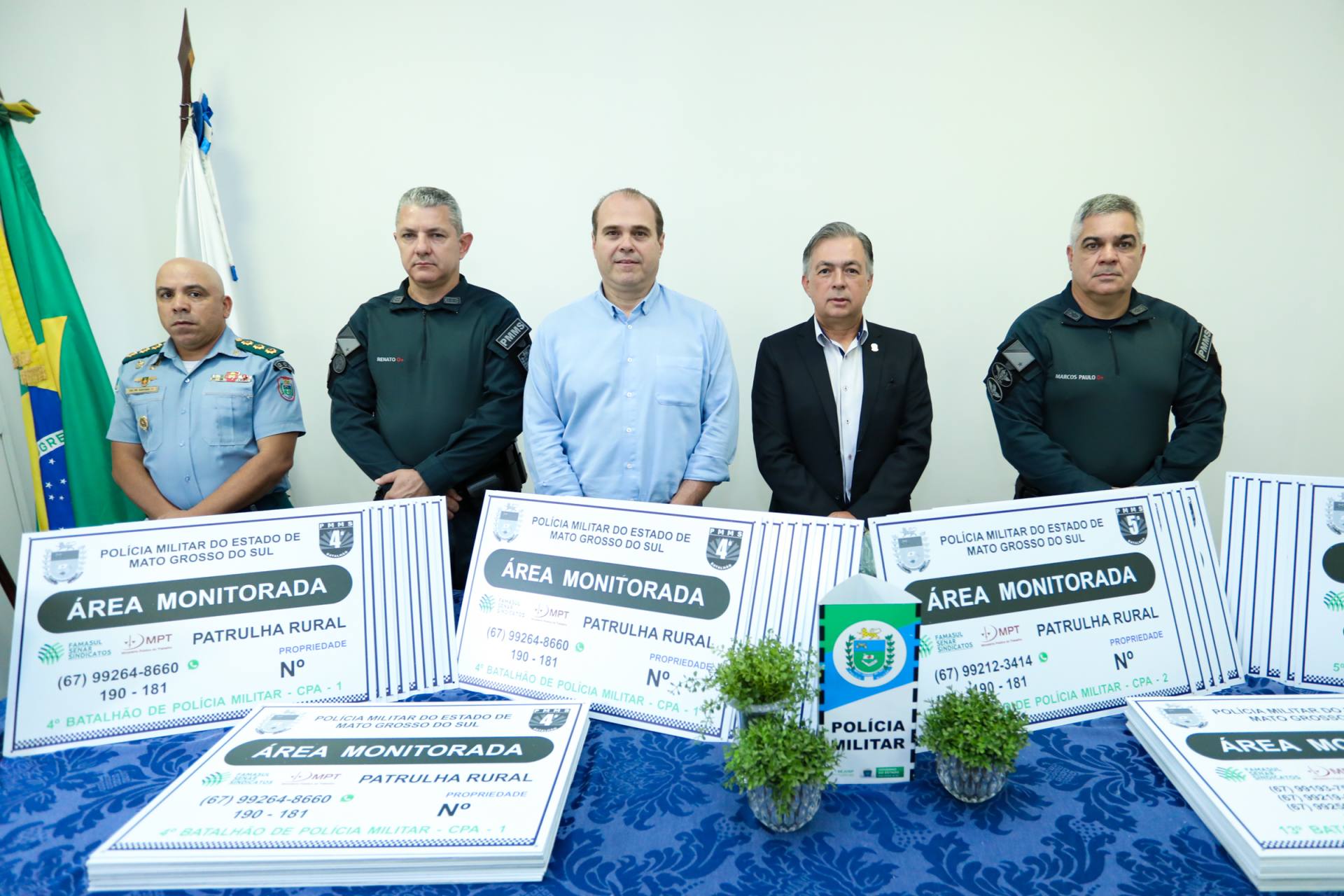 Campo Grande(MS) – Na tarde de ontem(12.12), a Polícia Militar do Estado de Mato Grosso do Sul recebeu do Sistema Famasul 1.500 placas de identificação para o programa “Campo Mais Seguro – Policiamento Rural”. As placas de identificação