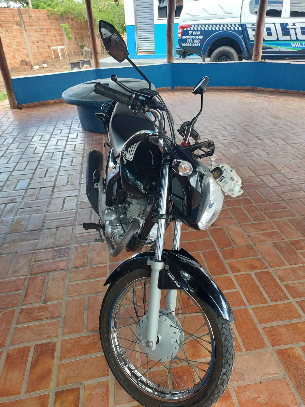 Coxim (MS): A Polícia Militar apreendeu na madrugada de hoje (04/12), uma motocicleta irregular em Alcinopolis. A Guarnição de Serviço foi acionada informando de um acidente de trânsito ocasionado por um pitolo de moto. Imediatamente os militares foram