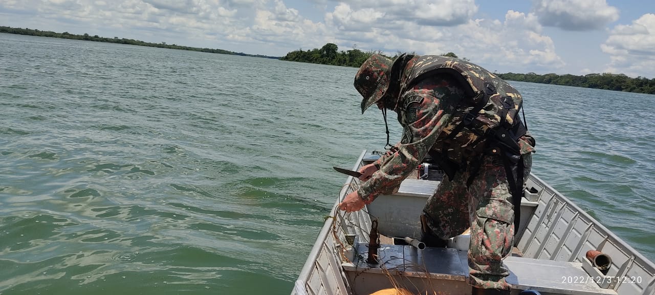 Campo Grande (MS) – Policiais Militares Ambientais da Subunidade do Parque Estadual das Nascentes e das Várzeas do Rio Ivinhema (PEVRI), que trabalham na operação Piracema realizam operação fluvial de prevenção à pesca predatória e outros crimes e
