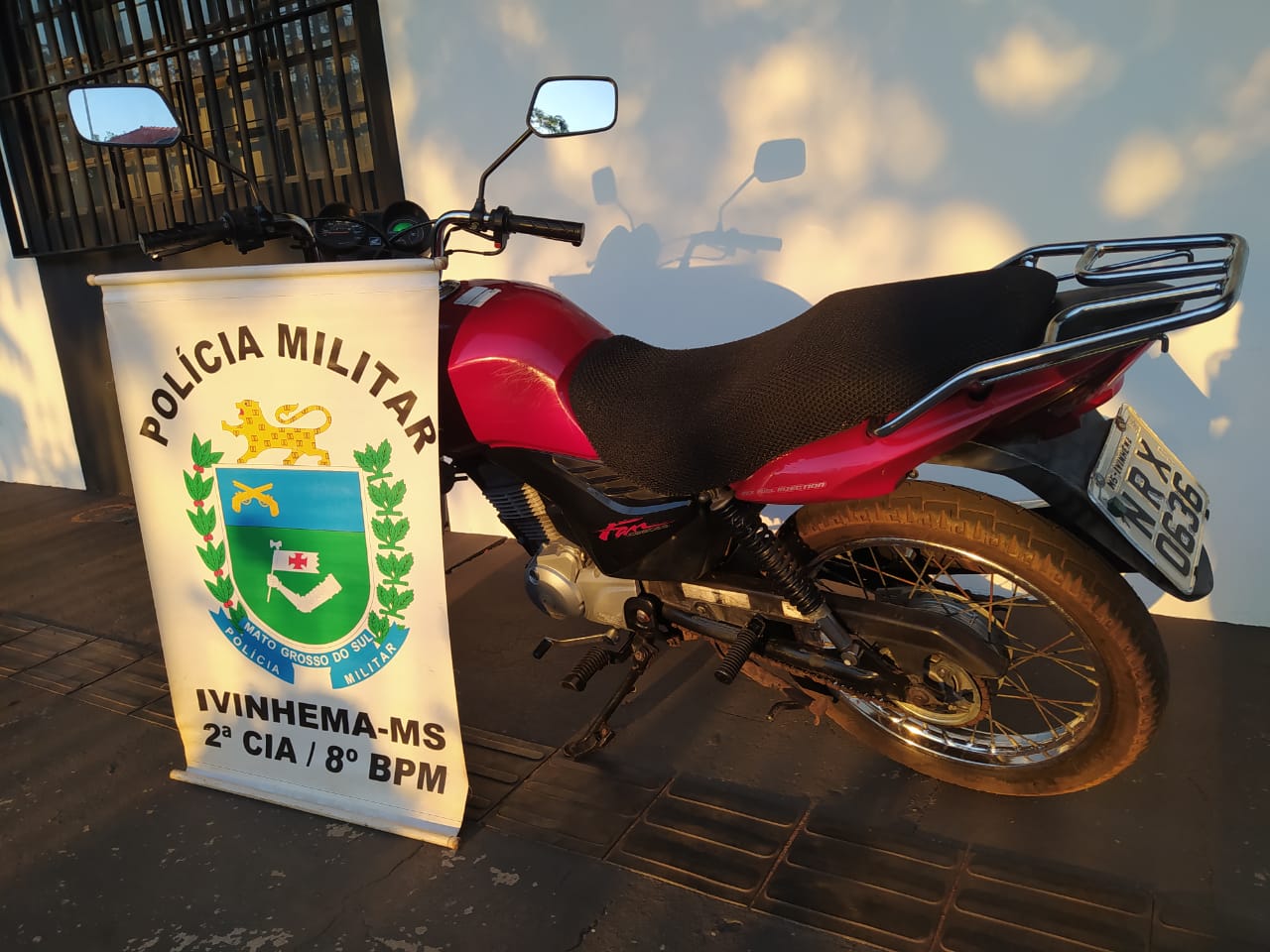 Nova Andradina (MS) – A Polícia Militar do Estado de Mato Grosso do Sul através da equipe de Radiopatrulha de Ivinhema recuperou na madrugada de domingo (20) por volta das 04 horas da manhã, uma motocicleta Honda vermelha que havia sido furtada na