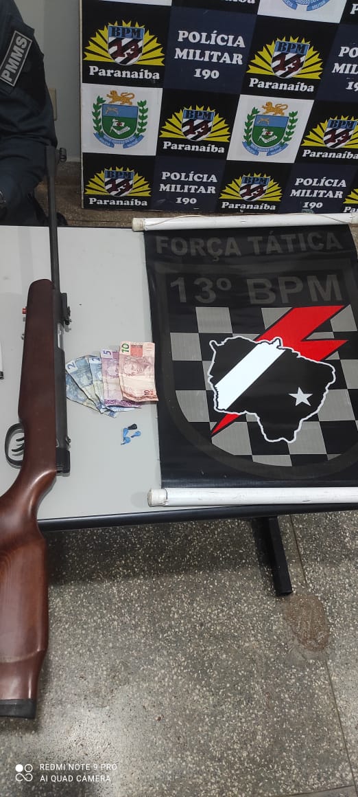 Homem foi preso pela Polícia Militar após porte de drogas para consumo pessoal e condução de motocicleta com numeração de identificação raspada. Nessa sexta (18), por volta das 20h a Equipe de Força Tática do 13º BPM realizou o patrulhamento