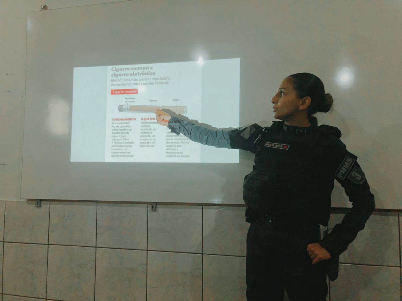 Itaporã (MS)- Na manhã da última quarta-feira (16) a 2° Tenente PM Denise Rosa, comandante do 3° Pelotão de Polícia Militar de Itaporã, ministrou uma palestra educativa para alunos do ensino fundamental 2 e médio. A palestra foi realizada através do