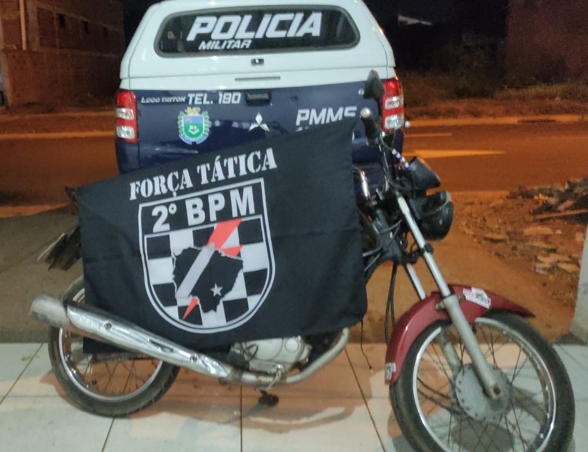 Três Lagoas – MS, no dia 20 de novembro, a guarnição de Força Tática do 2º Batalhão de Polícia Militar recuperou uma motocicleta furtada e realizou a prisão do receptador. Neste domingo, por volta das 18h, uma guarnição da Força Tática do 2º
