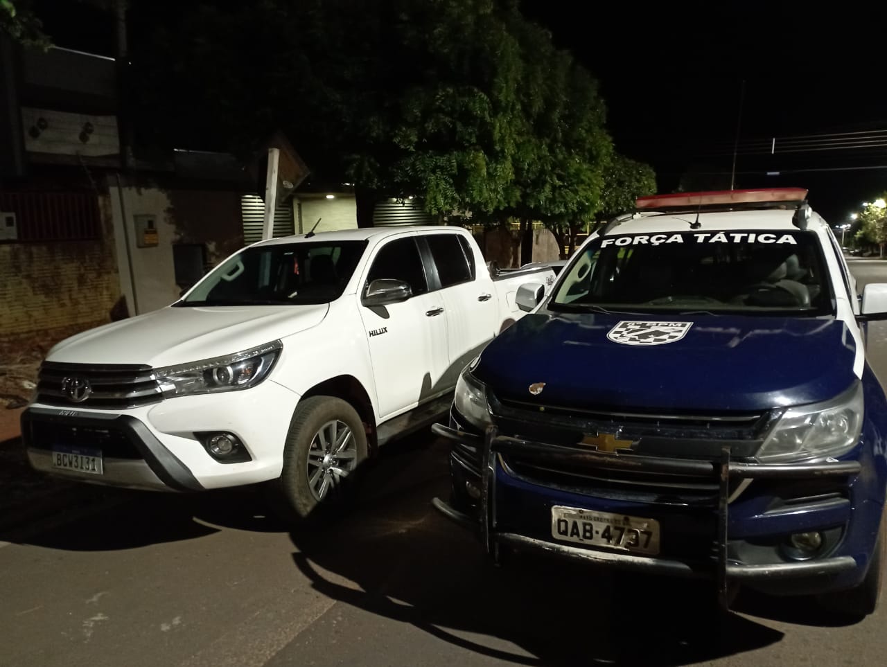 Nova Andradina (MS) – O 8° Batalhão de Polícia Militar através da equipe de Força Tática, recuperou na noite de terça-feira (21) uma caminhonete Toyota Hilux de cor branca com queixa de roubo no Estado de São Paulo. A equipe policial
