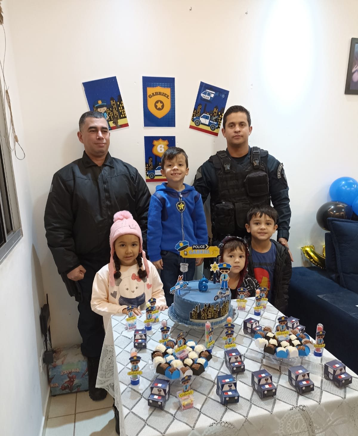 Campo Grande (MS) – Policiais da 10ª CIPM – Companhia Independente de Polícia Militar, na noite de sábado (11), prestigiou o pedido de aniversário de uma criança na região da Lagoa. O pedido do aniversariante, Gabriel Laier Umar, foi comemorado com