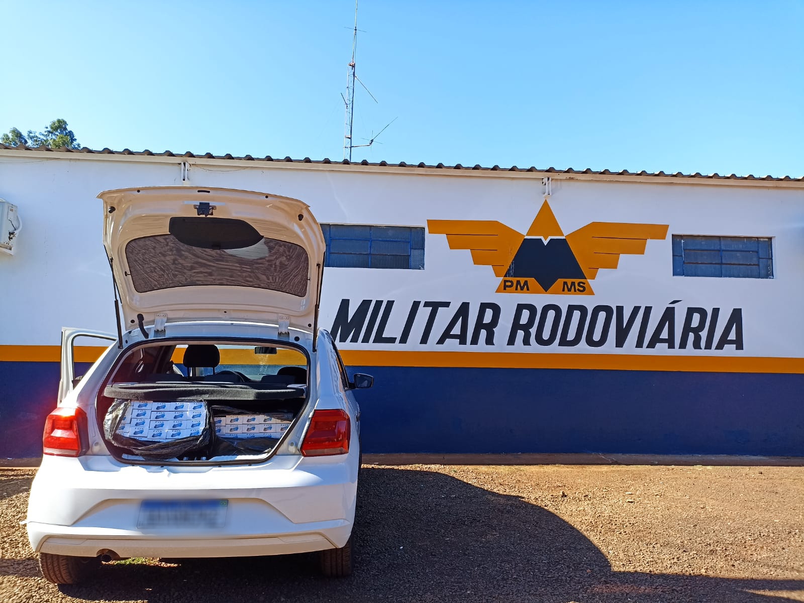 Campo Grande/MS – A equipe da Base Operacional de Vista Alegre, da Polícia Militar Rodoviária, apreendeu na tarde deste domingo (12/05) uma carga de contrabando. Durante policiamento na MS-164, os PMs abordaram um veículo VW/Gol, placa de Campo