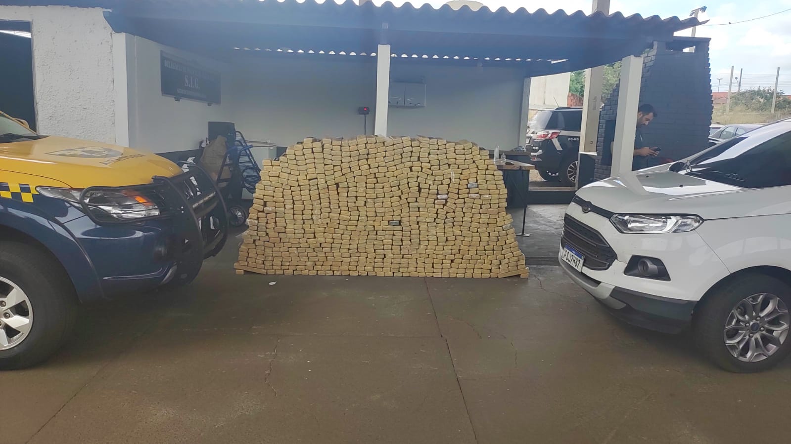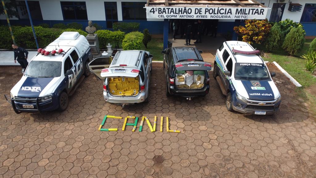 Nesta quarta-feira (o8), a Guarnição do Canil da Polícia Militar de Ponta Porã em patrulhamento pela estrada vicinal próximo ao Posto Aquidaban, deparou-se com dois veículos SUV de marca Toyota vindo em lado contrário da pista. Ao dar ordem de