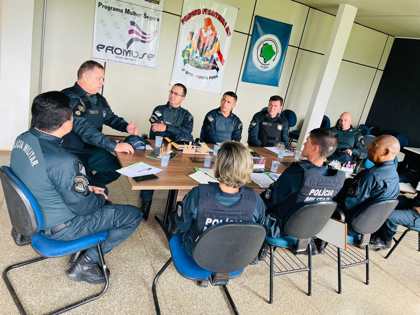 Ponta Porã (MS) – O Comandante do CPA-I Coronel QOPM Roseni juntamente com o Comandante do 4º Batalhão de Polícia Militar de Ponta Porã – Tenente-Coronel QOPM Santos Melo, reuniram-se na manhã desta quarta-feira (08/6) com os demais Comandantes da