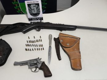 Coxim (MS): Na noite deste sábado (24), a Polícia Militar prendeu um homem de 54 anos por ameaça e apreendeu duas armas de fogo em Rio Verde de Mato Grosso/MS. A guarnição de serviço foi acionada por uma mulher de 43 anos que relatou estar sendo