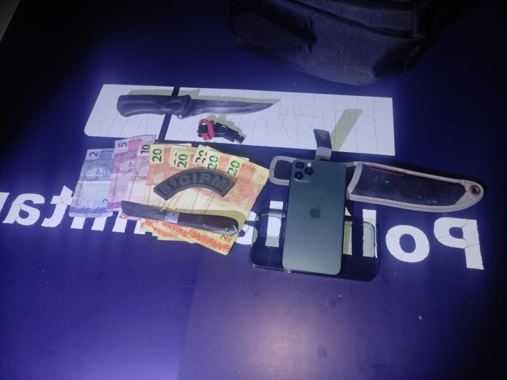Três Lagoas (MS) – Na segunda-feira (30/05), a equipe da Força Tática abordou cinco indivíduos em duas motos Honda e um veículo Ford Del Rey na estrada de acesso ao porto de areia próximo às margens do Rio Paraná. Ao serem entrevistados pela Equipe