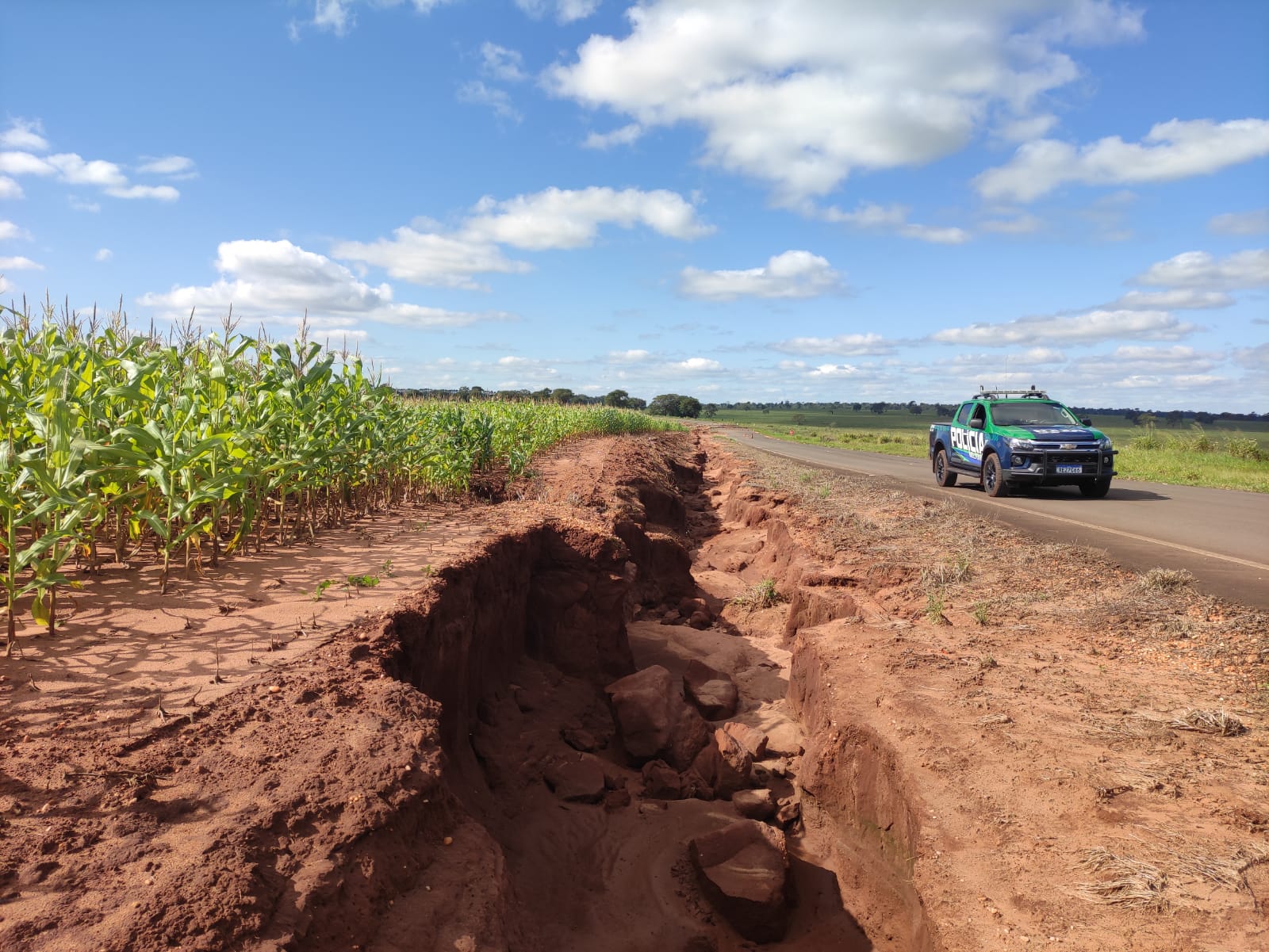 Campo Grande (MS) – Policiais Militares Ambientais de Mundo Novo receberam denúncia, de que à margem da rodovia MS 180, no município de Iguatemi, a 15 km da cidade, havia uma erosão provocada por uma atividade agrícola na zona de domínio da rodovia.