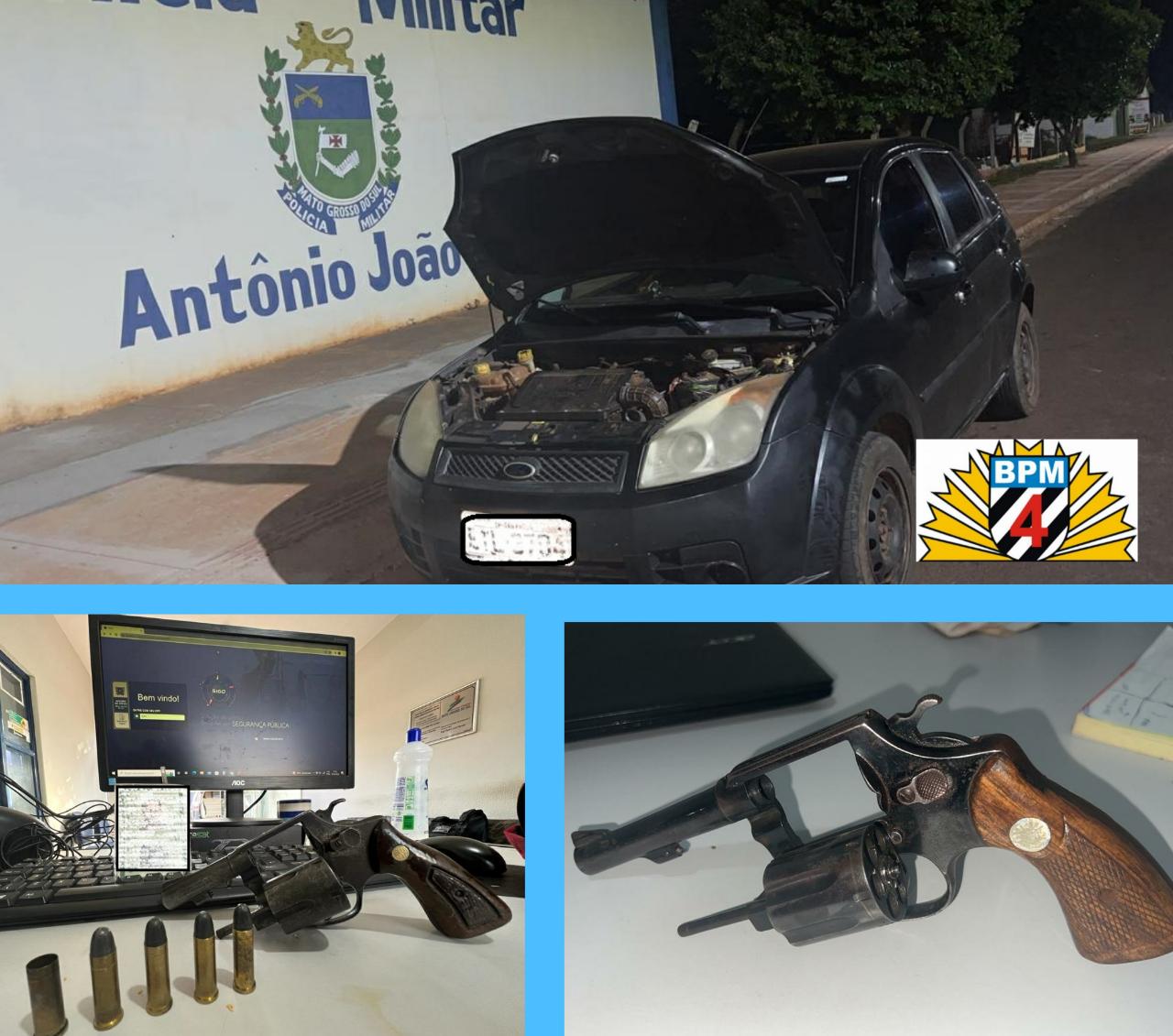 Ponta Porã (MS) – A Polícia Militar do município de Antônio João atendeu duas ocorrências neste sábado (28/5) que resultaram na prisão de dois homens e apreensão de duas armas de fogo e um veículo. A Primeira ocorrência foi registrada no período