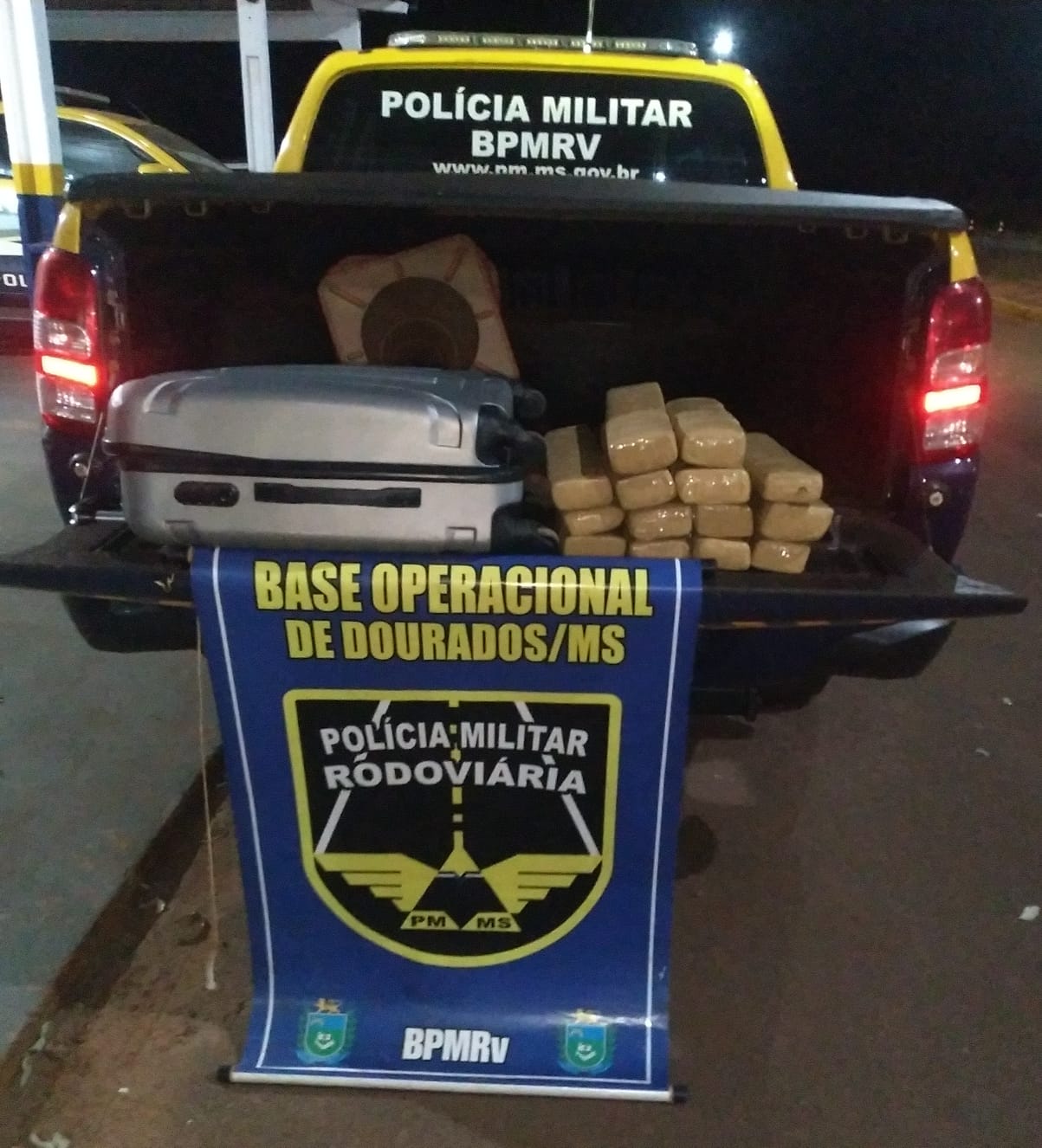 Campo Grande/MS – A equipe da Base Operacional de Dourados, da Polícia Militar Rodoviária, apreendeu na noite de hoje (24/05) uma bagagem com maconha em Dourados. Os Policiais Militares realizavam fiscalização na MS-379 e abordaram um ônibus que fazia