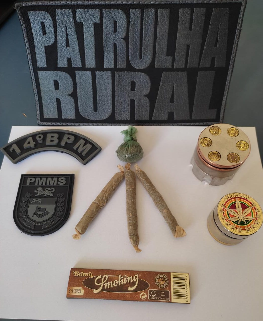 Fátima do Sul (MS) – Na manhã desta terça-feira (24/05), policiais militares da equipe de patrulhamento rural comunitário georreferenciado do 14º Batalhão conduziram um indivíduo por porte de drogas para consumo pessoal. Em virtude da Operação