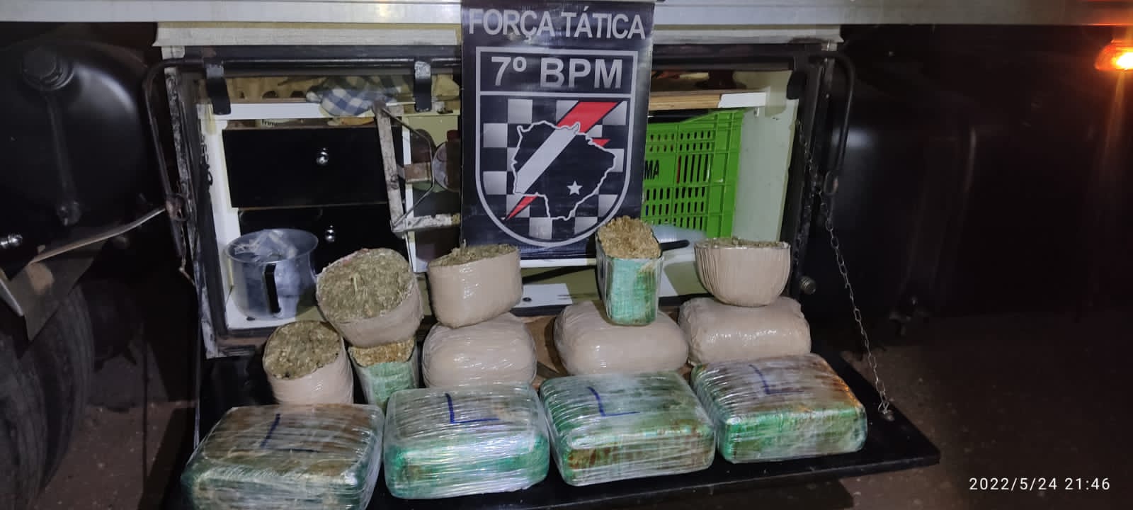 Aquidauana/MS – Nessa terça-feira (24/05), a equipe da Força Tática apreendeu uma carga de entorpecente em Miranda durante Operação Hórus. Por volta das 22h00min, enquanto a equipe em destaque realizava o policiamento ostensivo e preventivo