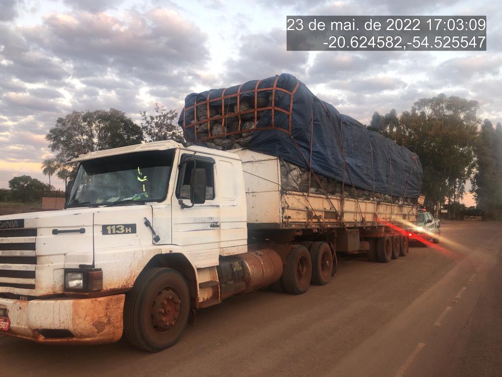 Campo Grande (MS) – Durante fiscalização na área rural do município, Policiais Militares Ambientais de Campo Grande abordaram ontem (23) à tarde, um caminhão Tractor Scania, com uma carreta acoplada, que transportava ilegalmente uma carga de 100 m³