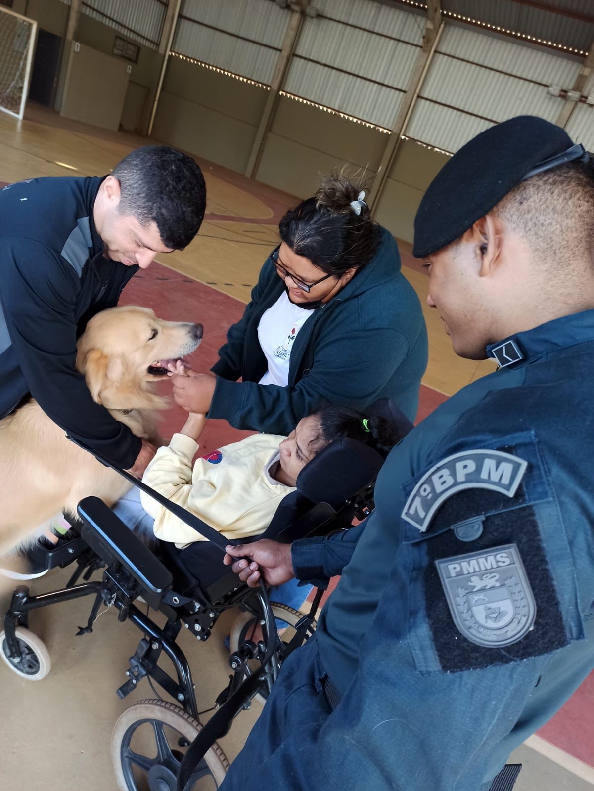 Aquidauana (24) – Neste mês, o Projeto Pelo Amigo de Cinoterapia, realizado pelo Canil do 7º BPM, retornou suas atividades, desta vez na Pestalozzi de Aquidauana, onde as crianças e jovens interagiram com os cães, estimulando suas emoções e