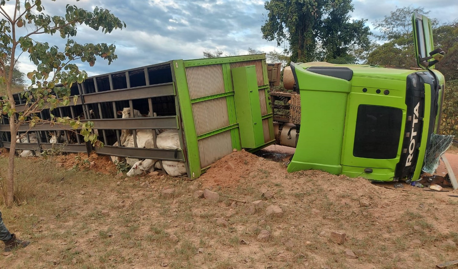 Campo Grande (MS) – Uma equipe da Polícia Militar Ambiental de Rio Negro realizava fiscalização ambiental pela rodovia BR 419 ontem (16) à tarde, no município de Rio Verde de Mato Grosso (MS), quando percebeu um caminhão bitrem boiadeiro desgovernado