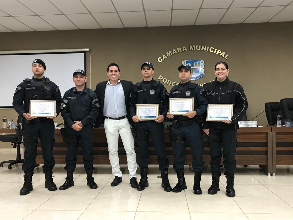 Policiais Militares da 1ª Companhia Independente de Polícia Militar de Bonito receberem do senhor Vereador André Luiz Ocampos Xavier, na Câmara Municipal, Moção de Parabenização pelos excelentes serviços prestados durante atendimento de ocorrência