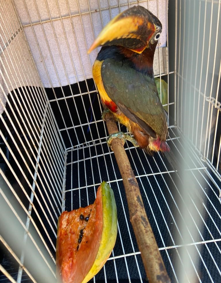 Campo Grande (MS) – A funcionária (42) de uma casa que cuida de idosos, localizada no Bairro Santa Fé, em Rio Negro, telefonou à Polícia Militar Ambiental ontem (11), informando que um animal da espécie Araçari-castanho (Pteroglossus castanotis)