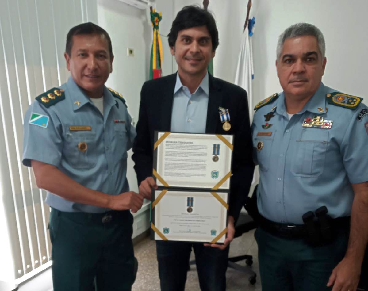 Três Lagoas (MS) – Na manhã de hoje (13), o Vice – Prefeito de Três Lagoas Sr. Paulo Jorge Salomão da Camara Nery recebeu em solenidade na sala do Comandante Geral da PMMS Coronel QOPM Marcos Paulo Gimenez a Medalha Tiradentes juntamente com Coronel