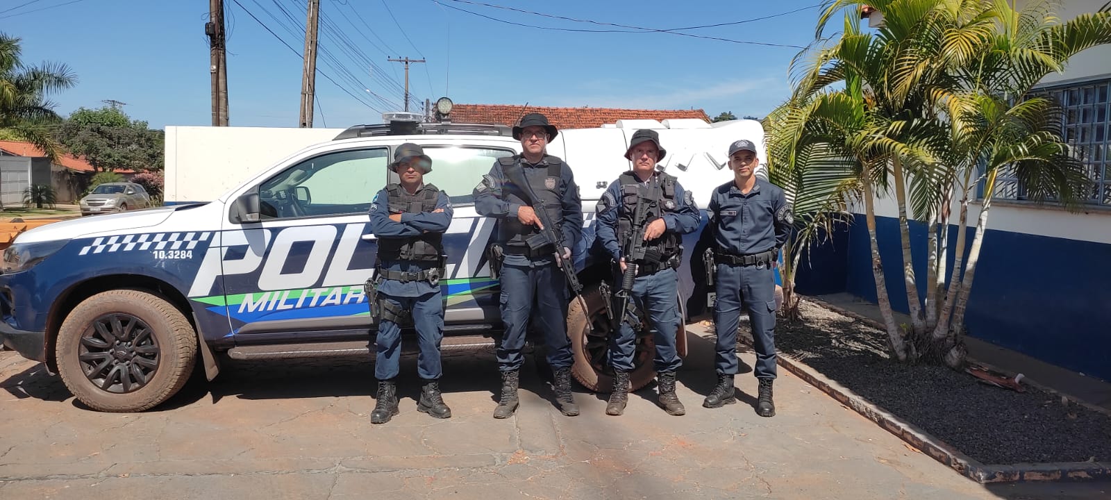 Coxim (MS): A Polícia Militar de Pedro Gomes-MS recebeu hoje (10/05), o reforço de policiamento na área rural do município por meio do Patrulhamento Rural do 5° Batalhão de Polícia Militar de Coxim/MS. A Patrulha Rural estará pelas vicinais da região