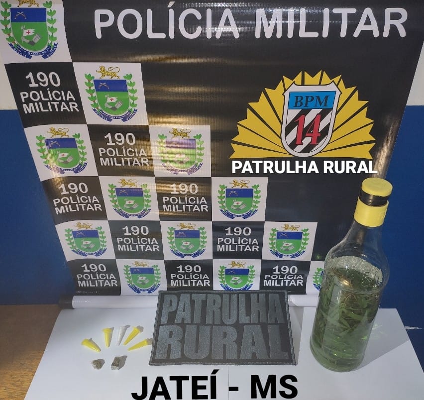 Jatei (MS) – Equipe de Patrulhamento Rural Comunitário Georrefenciado do 14°BPM durante Operação Campo Mais Seguro da Secretaria de Estado de Justiça e Segurança Pública do Estado de Mato Grosso do Sul apreenderam na madrugada desta terça feira