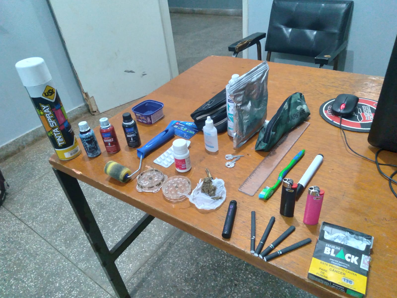 Nessa segunda (09), por volta das 23h, policiais militares do 13º Batalhão, integrantes da equipe de Patrulha Urbana, detiveram dois adolescentes e um adulto momentos após terem pichado um edifício público, com ele foi encontrada um porção de maconha.