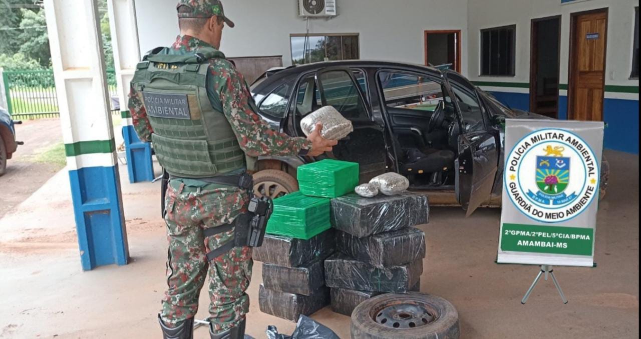 Campo Grande (MS) – Policiais Militares Ambientais de Amambai realizavam fiscalização ambiental no município, na rodovia MS MS 156 ontem (4) à tarde e, quando foram abordar um veículo Citroen C3, onde estava somente o condutor, o motorista furou a