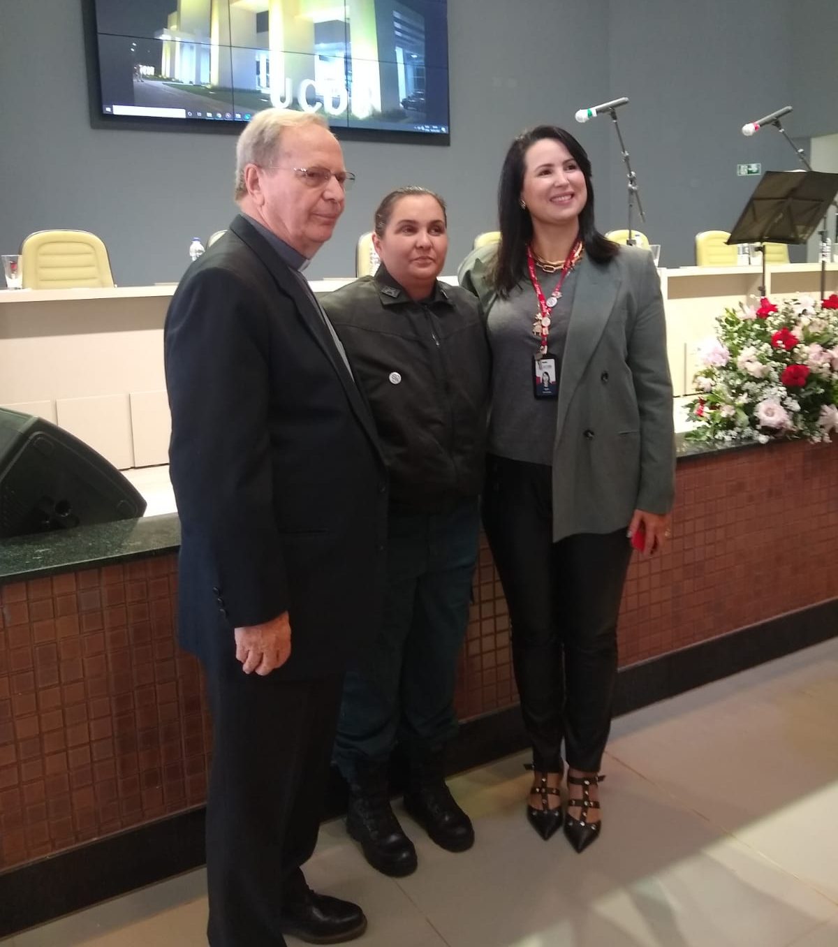 Campo Grande(MS) – Na manhã de hoje(04.05), na Universidade Católica Dom Bosco- UCDB, a Coronel PM Neidy Nunes Barbosa Centurião participou do lançamento da Liga Feminina do Direito, ocasião na qual foi homenageada por ser madrinha do grupo. A