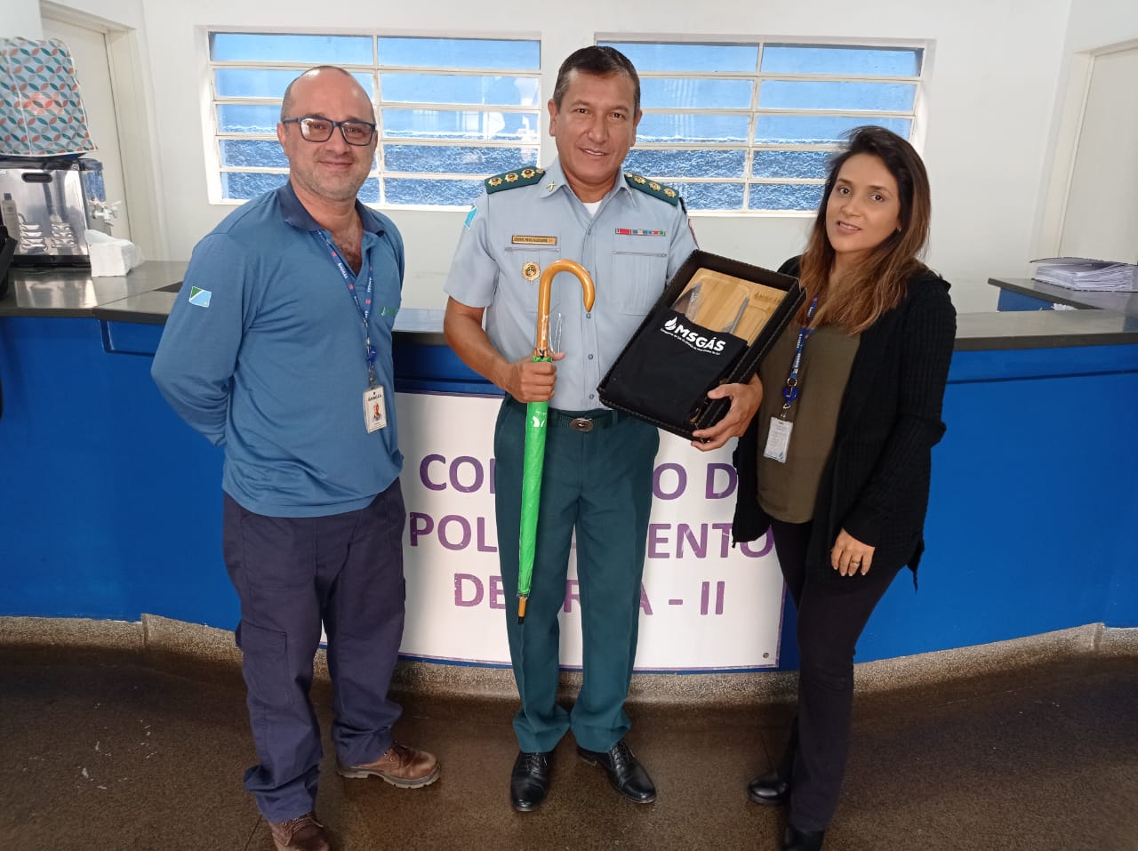 Três Lagoas (MS) – O Comando de Policiamento de Área – 2 (CPA-2) recebeu na manhã de hoje (04/05), a visita dos colaboradores da MSGÁS ( Companhia de Gás do Estado de Mato Grosso do Sul) a Sra. Rosimeire Camargo – Analista Administrativa e o