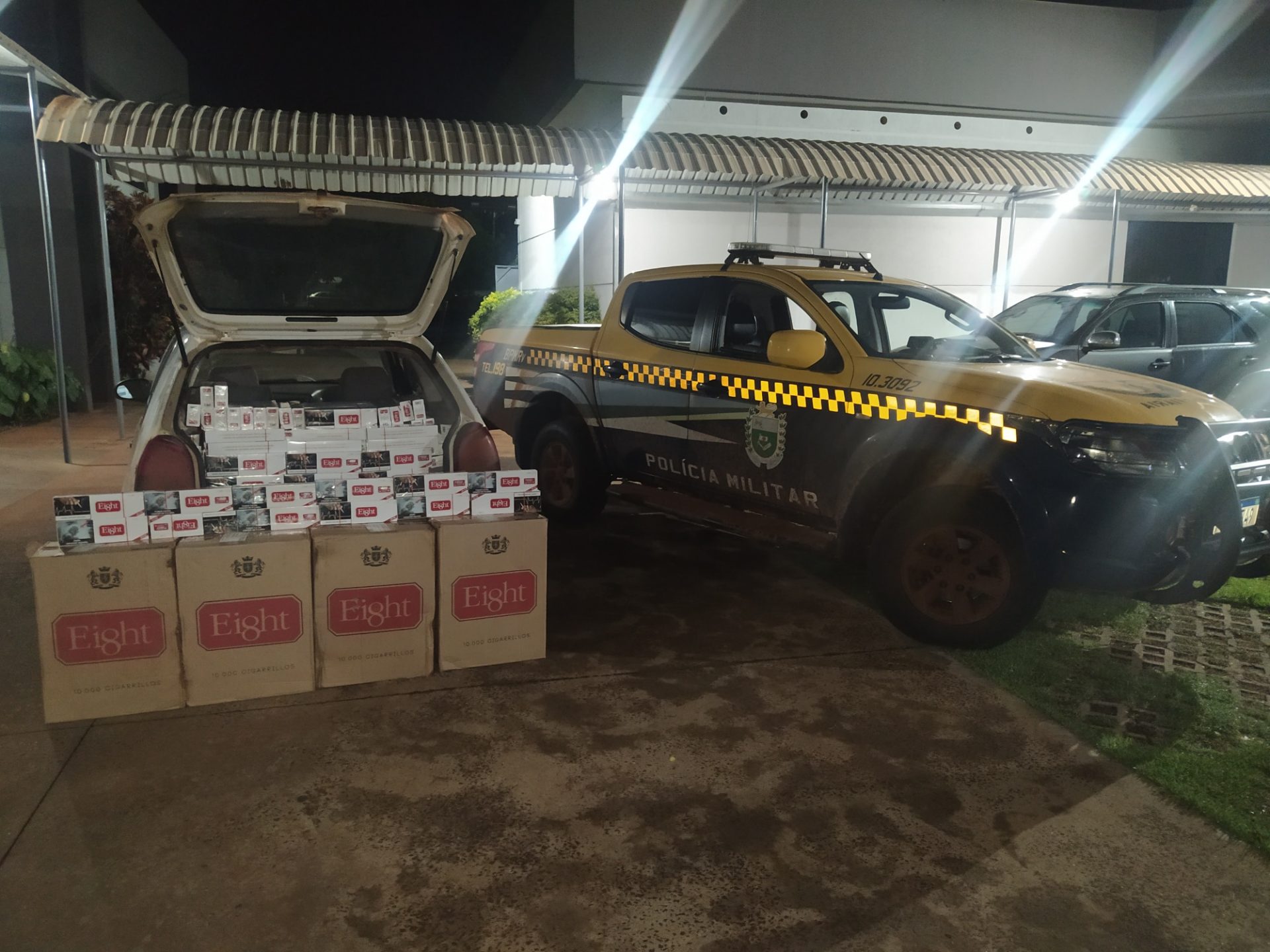 Campo Grande/MS – A equipe da Base Operacional de Nova Andradina, da Polícia Militar Rodoviária, apreendeu na noite dessa terça-feira (03/05) carga de contrabando. Durante policiamento na MS 473 os PMs abordaram um veículo VW/Gol, cor branca, placa de