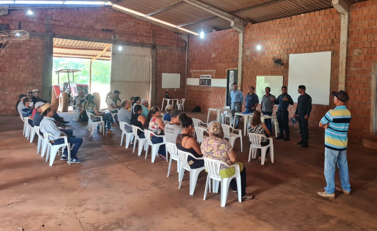 Campo Grande (MS) – Policiais militares atuantes no patrulhamento rural realizaram palestra ontem (02/05), referente o Programa Campo Mais Seguro junto aos produtores rurais do assentamento Sucuri. Os militares trataram de diversos assuntos com os