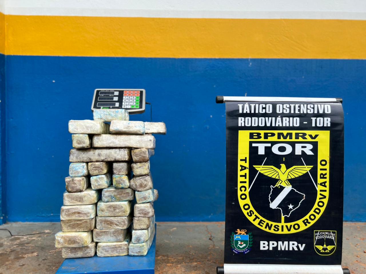 Ponta Porã (MS) – Policiais Militares que compõem a equipe do Canil do 4º Batalhão, apreenderam 40 quilos de substância análoga à maconha que foram abandonados às margens da rodovia 463, saída para Dourados. A ocorrência se deu por volta