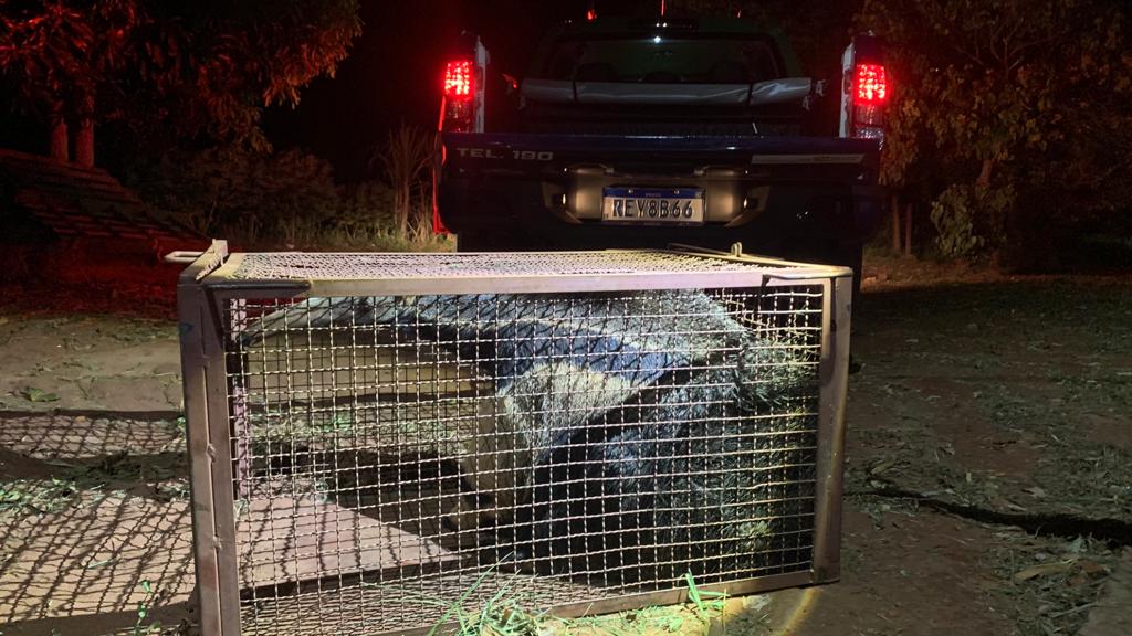 Campo Grande (MS) – Policiais Militares Ambientais de Batayporã capturaram ontem (2) às 22h40, um animal silvestre adulto da espécie Myrmecophaga tridactyla (Tamanduá-bandeira). Uma moradora do bairro Horto Florestal, de 29 anos, telefonou para a
