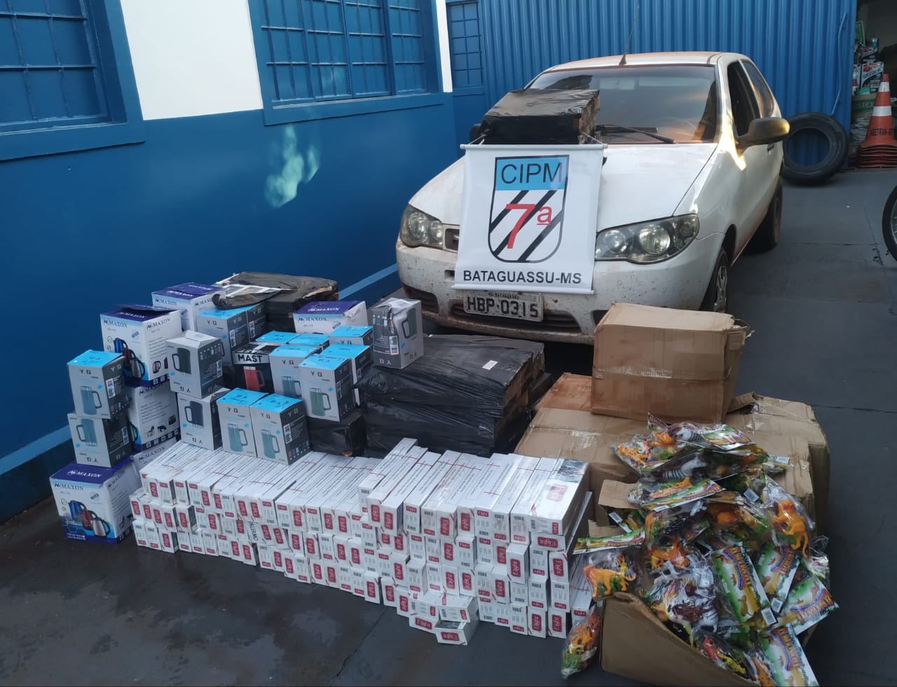Bataguassu (MS) – Na tarde de ontem (28), por volta das 13h30min, os policiais militares em Bataguassu apreenderam um veículo Fiat Pálio carregado com cigarros e mercadorias importadas do Paraguai – PY na estrada vicinal próximo ao córrego