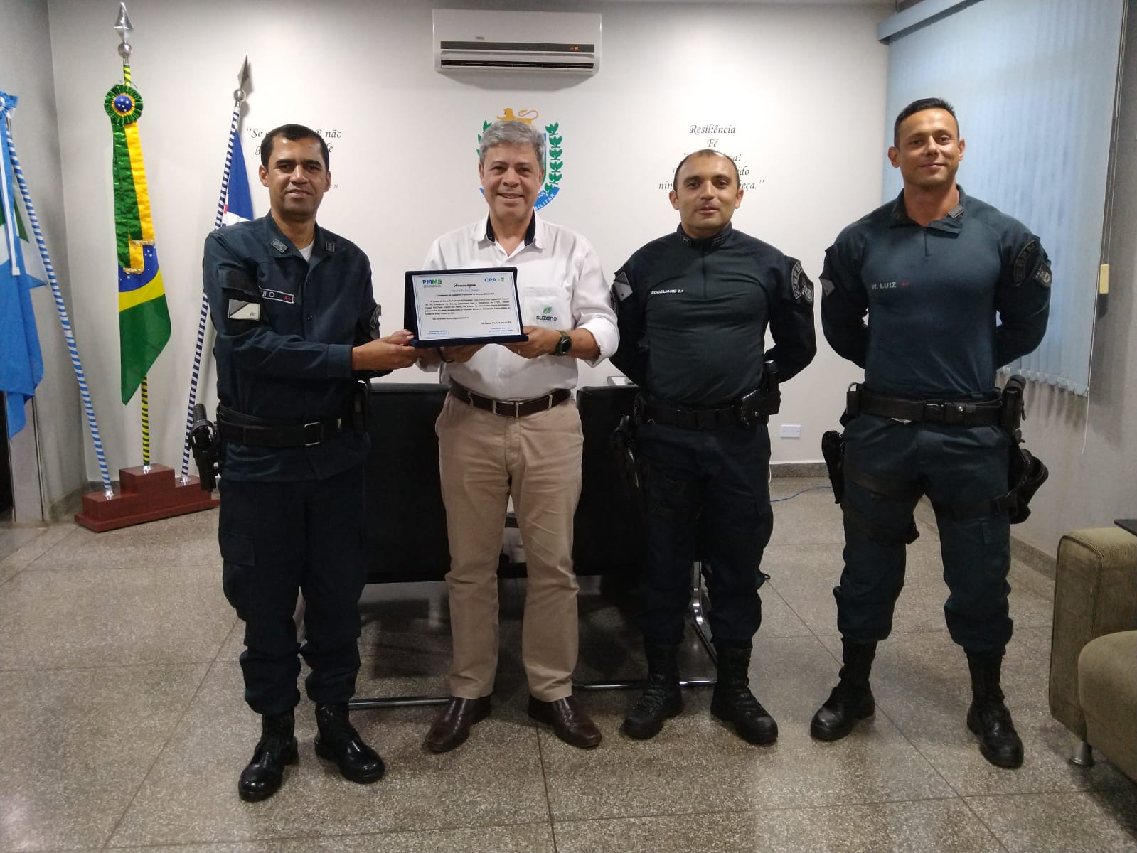 Três Lagoas (MS) – Nos dias 7 e 28 de abril, na sede do 2° BPM, o Tenente Coronel Paulo Ribeiro dos Santos, Comandante da Unidade, realizou a entrega de homenagens a colaboradores da empresa de papel e celulose Suzano. A homenagem foi realizada em razão